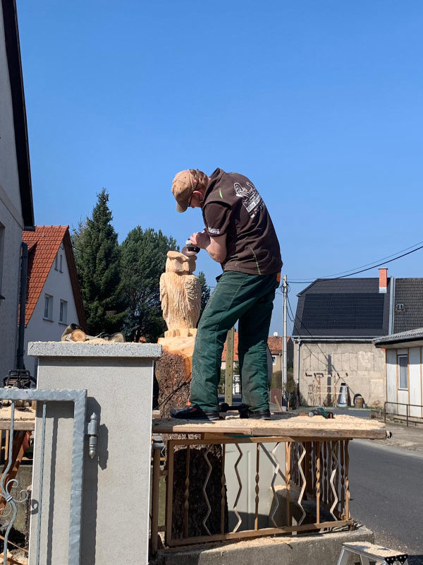 Als Geschenk für Freunde oder zur Verschönerung des eigenen Gartens. Eine Holzskulptur, mit der Kettensäge aus dem Vollholz herausgearbeitet, ist immer ein Blickfang.
